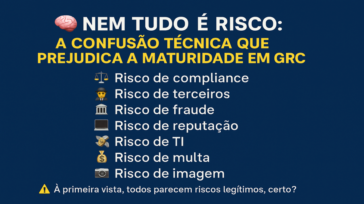 ❗Muita gente ainda confunde o que é tipo de risco, o que é causa, o que é evento e o que é consequência — e essa confusão prejudica diretamente a maturidade da gestão de riscos, compliance e controles internos.